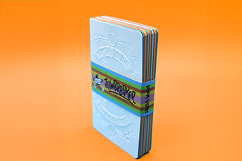 These books were inspired by the cross-section of a jawbreaker with their layers of colors. These books have the same rugged covers as our other books but in white. There are 60 pages divided into blue, green, orange, yellow and pink. The inside covers are white with colored speckles just like the candy. We used saddle-sewn binding for extra durability and quality. Paper is a snappy 120 GSM, is smooth for clean lines but has just enough tooth for some nice shading. Drawing on colored paper sparks a whole new twist to your drawings, doodling, writing, journaling, whatever. The variety of different colors in one book keeps you trying new things and adds to the fun. Give it a try, we've had a blast trying them out and think you will too.